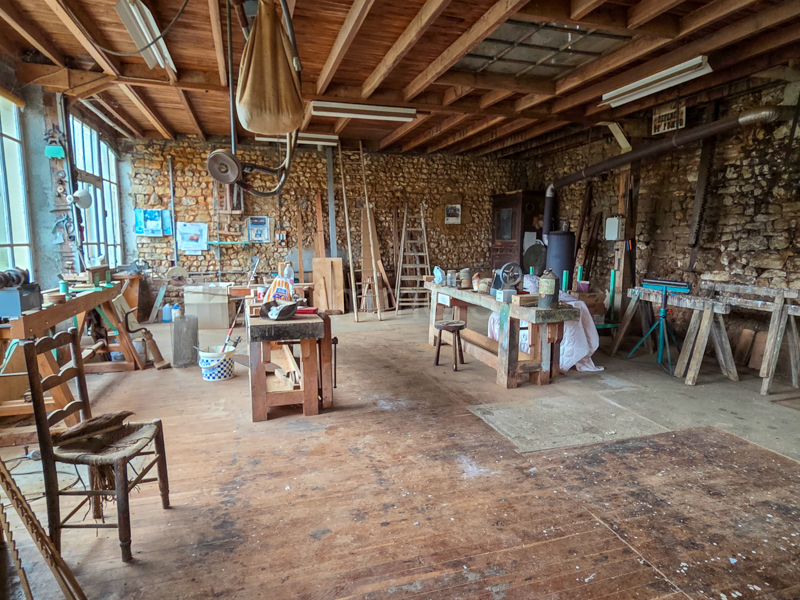 A real asset of the property is the range of outbuildings. An attractive workshop is attached to the house and comprises two generous rooms of 67 m² and 74 m². To the rear, a hangar with an adjoining outbuilding connects directly to the kitchen, while opposite the house stands a substantial hangar of approximately 136 m² with an attached garage. Completing the ensemble are three small outbuildings of around 10 m² each, adjoining the main house.