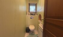This large property, with its spacious living room and large veranda overlooking the fields at the back, offers plenty of potential. Two bedrooms are located on the ground floor, and a large bedroom in the basement, with its own entrance, would make it easy to create a bed and breakfast business.