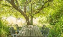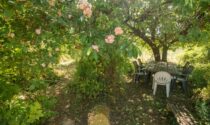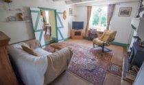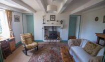 The south-facing garden offering lovely views, planted with well-established fruit trees, provides a delightful outdoor space to relax and enjoy sunny summer days.