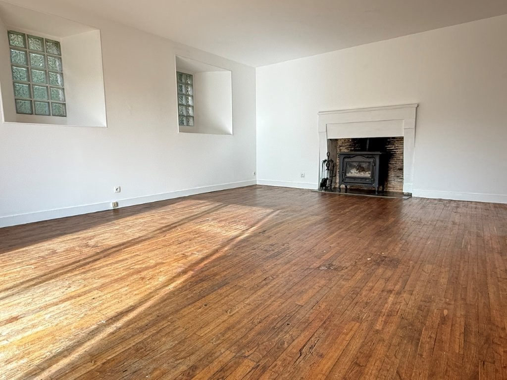 -Lounge (32.24m²): parquet flooring, wood-burning stove, stone flooring, bay window opening onto terrace