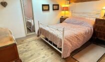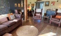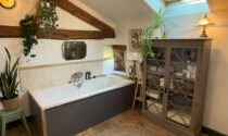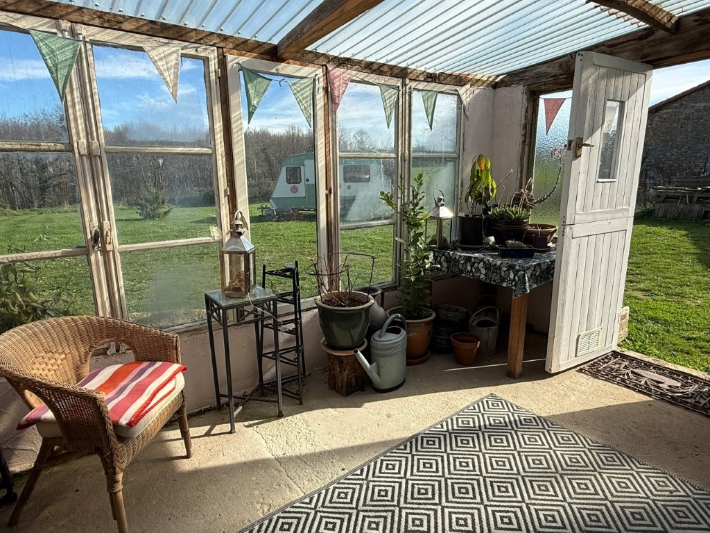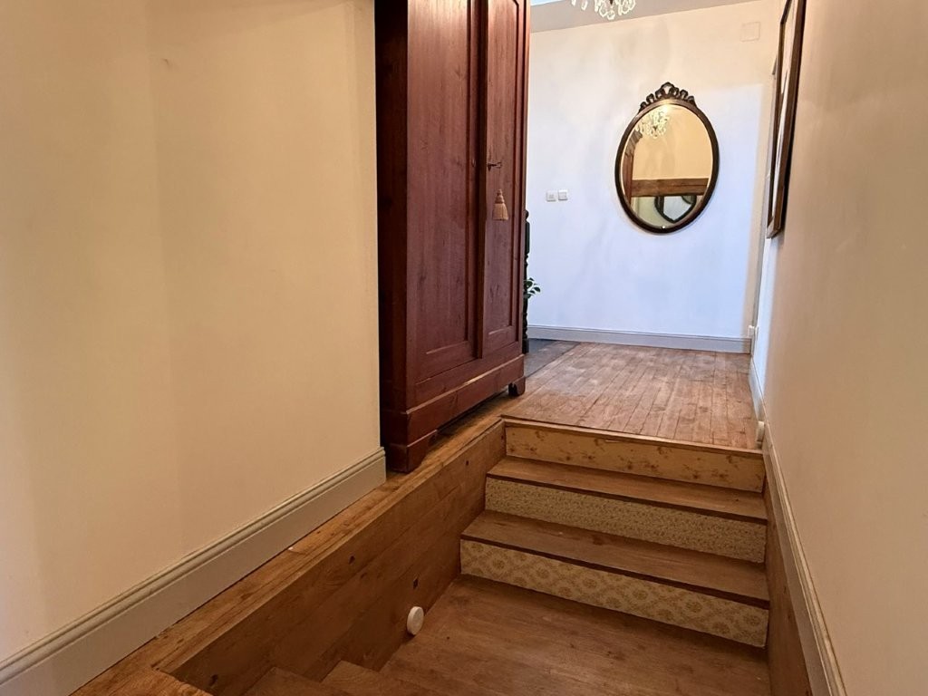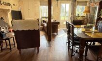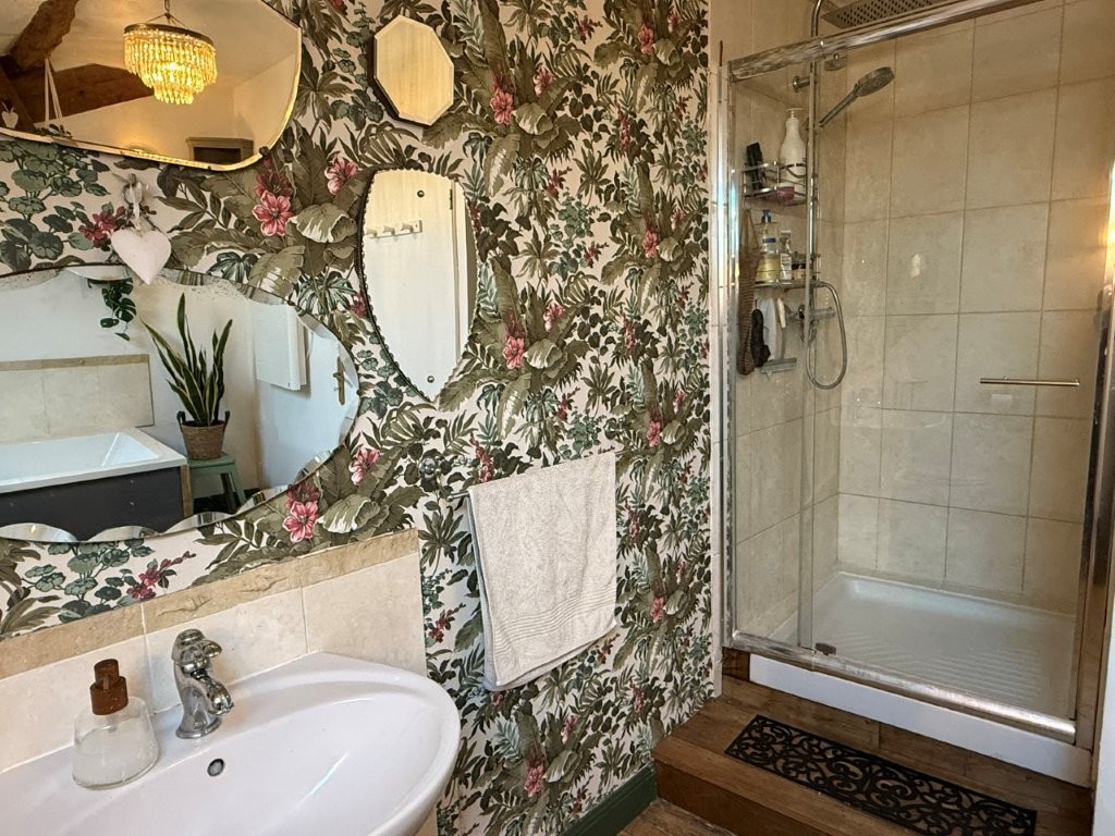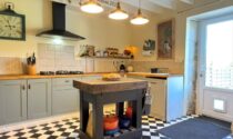 The lounge boasts an original fireplace fitted with a wood burner — ideal for cosy days and evenings. The well-equipped modern kitchen, thoughtfully designed to complement the home’s original character, opens onto a terrace where you can enjoy the stunning countryside views.
