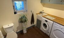 -WC / Laundry room (5m²): parquet flooring, WC, washbasin