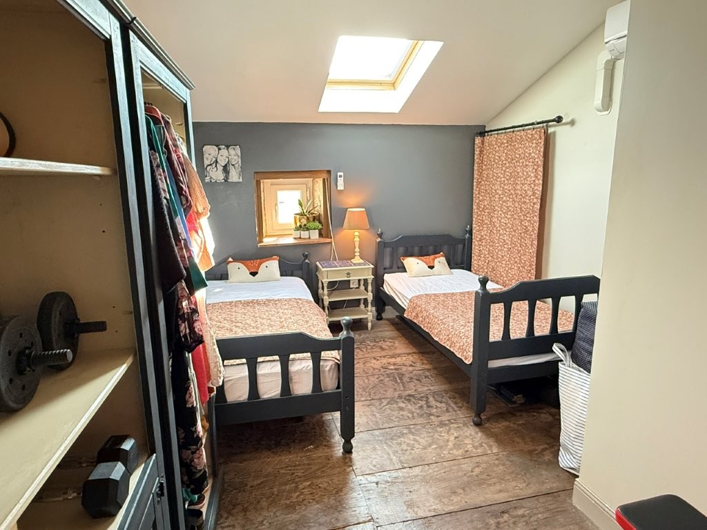 -Bedroom 3 (18m²): wooden floor, beams, Velux window