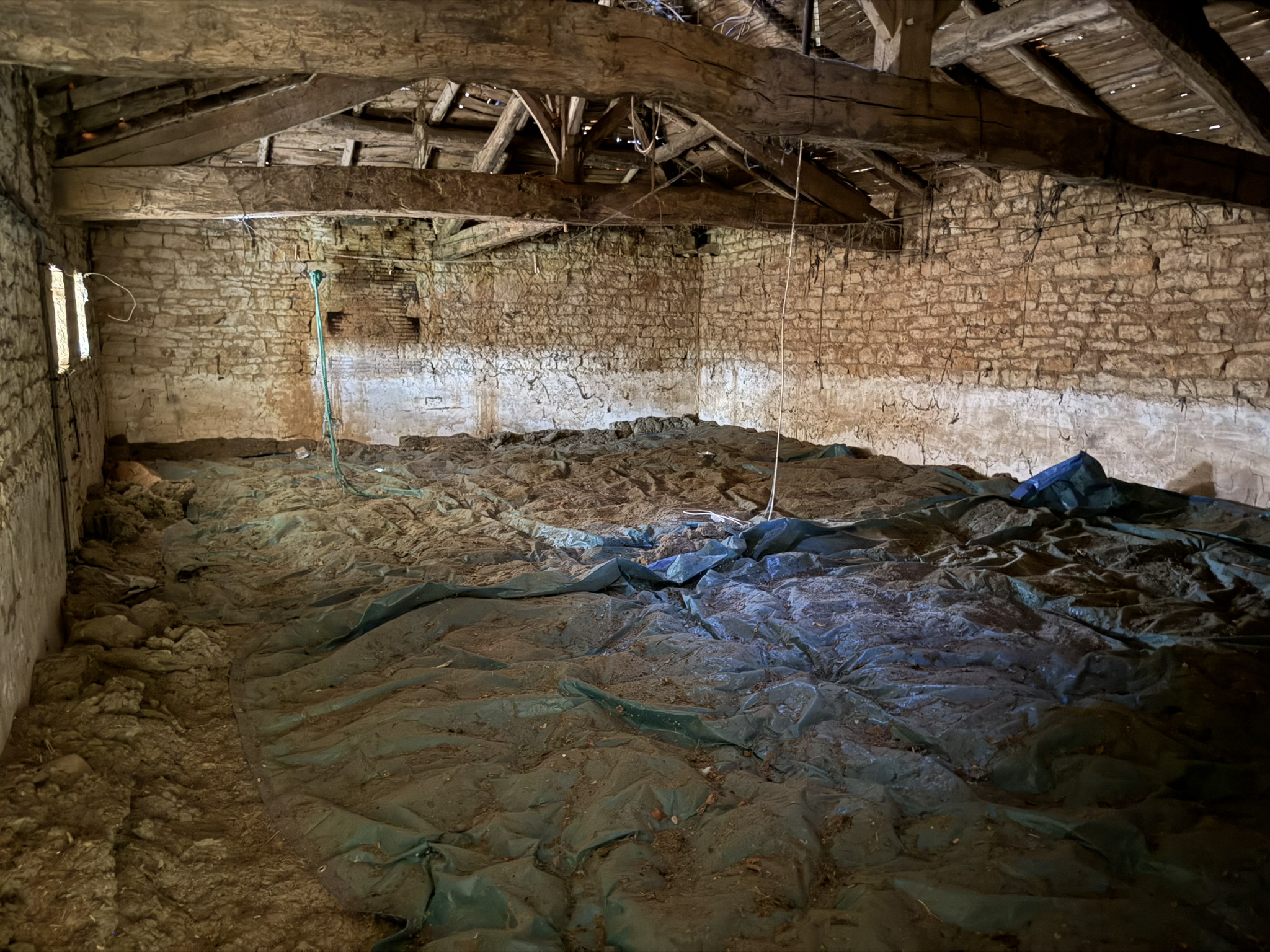 Barely habitable in its current condition, this property represents an excellent opportunity for renovation enthusiasts. It features an attic suitable for conversion and an attached barn, offering possibilities for extending the living space or creating new rooms. Oil central heating already installed.
