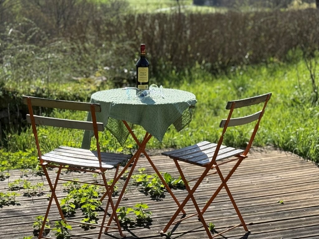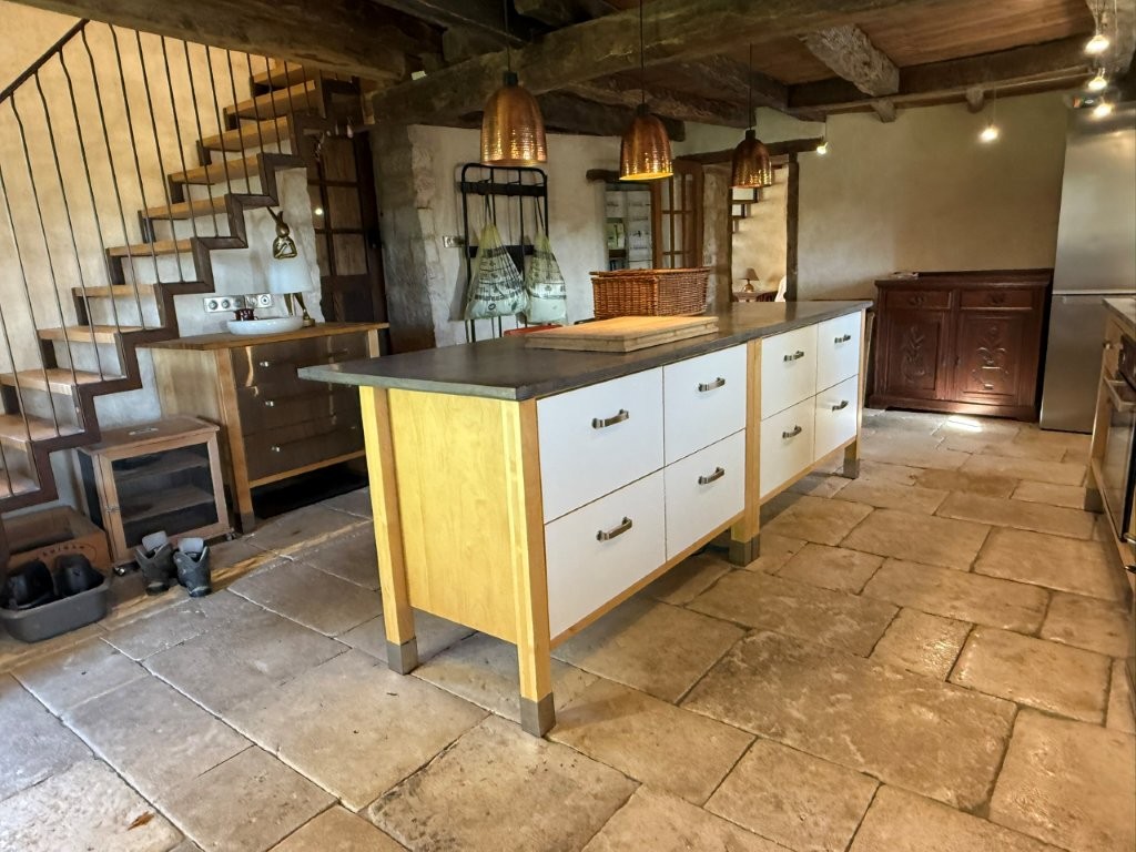 The buildings are set within generous south- and west-facing gardens planted with mature fruit trees. Although located in the heart of the commune, the surrounding parcels of land (included in the sale) provide excellent privacy and a wonderful sense of space.
