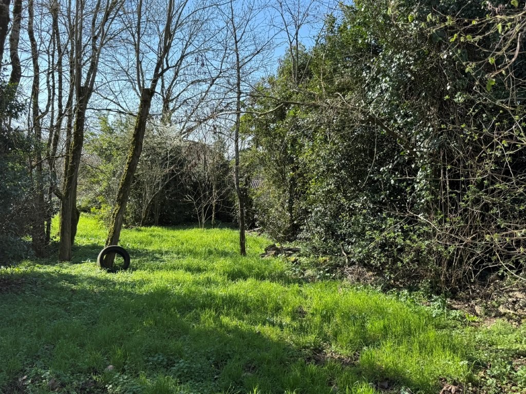 Large courtyard with space to park a car, a walled garden, wooded garden with access for more parking.