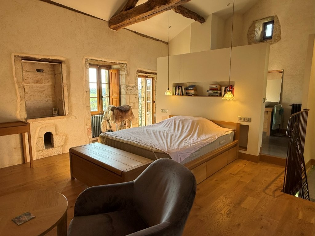 Mezzanine / Chambre (reached via the stairs from the sitting room) 20m² Wood floor, velux window (remote controlled) and with blind. Small storage mezzanine above 5m²