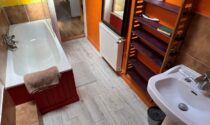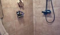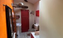 WC – 2 m² (tiled floor, sink, stone walls)