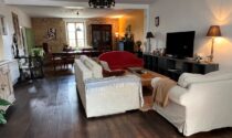 Spacious living room – 50 m² (wood flooring, wood-burning stove)