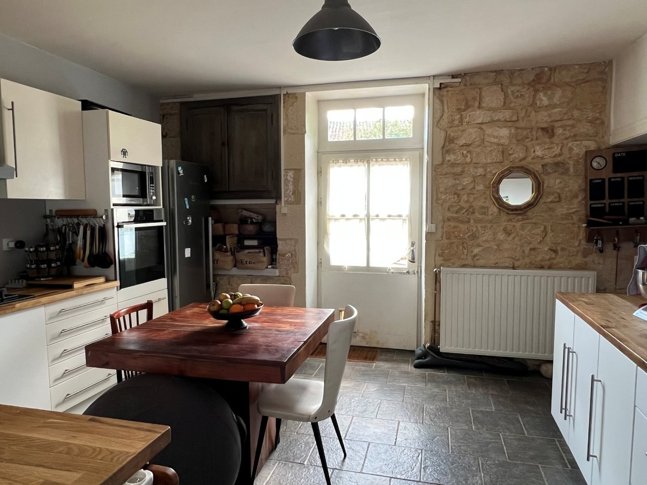 Fitted kitchen – 16 m² (tiled floor, exposed stone walls)