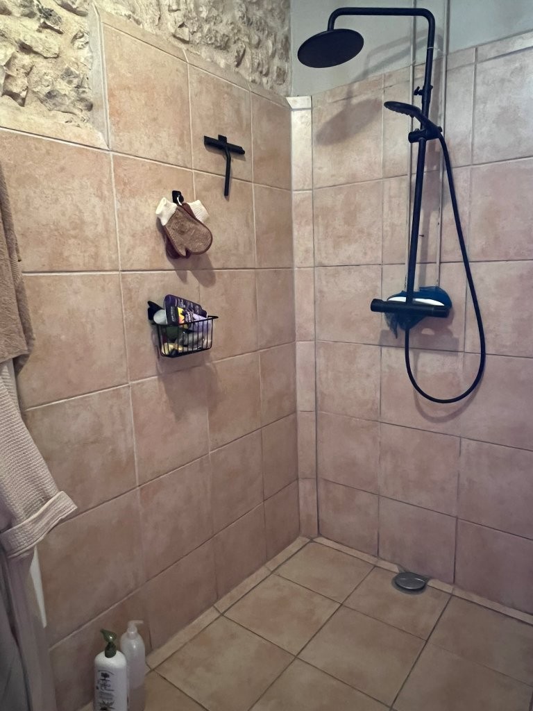 Bedroom 1 – 26 m² (wood floor, stone walls) with en-suite shower room (2 m², Italian-style shower)