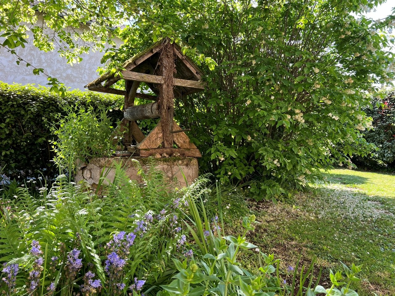A fenced garden, a well