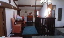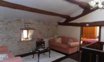 Lounge/dining-room (40m2) Wooden floor. Beams. Fireplace with wood burner