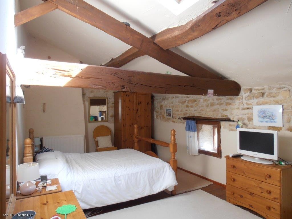 Bedroom 1 (17m2) Parquet. Velux. Stone walls. Beams.