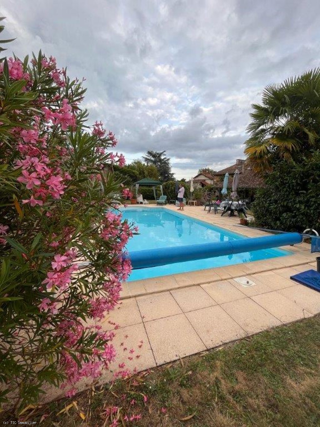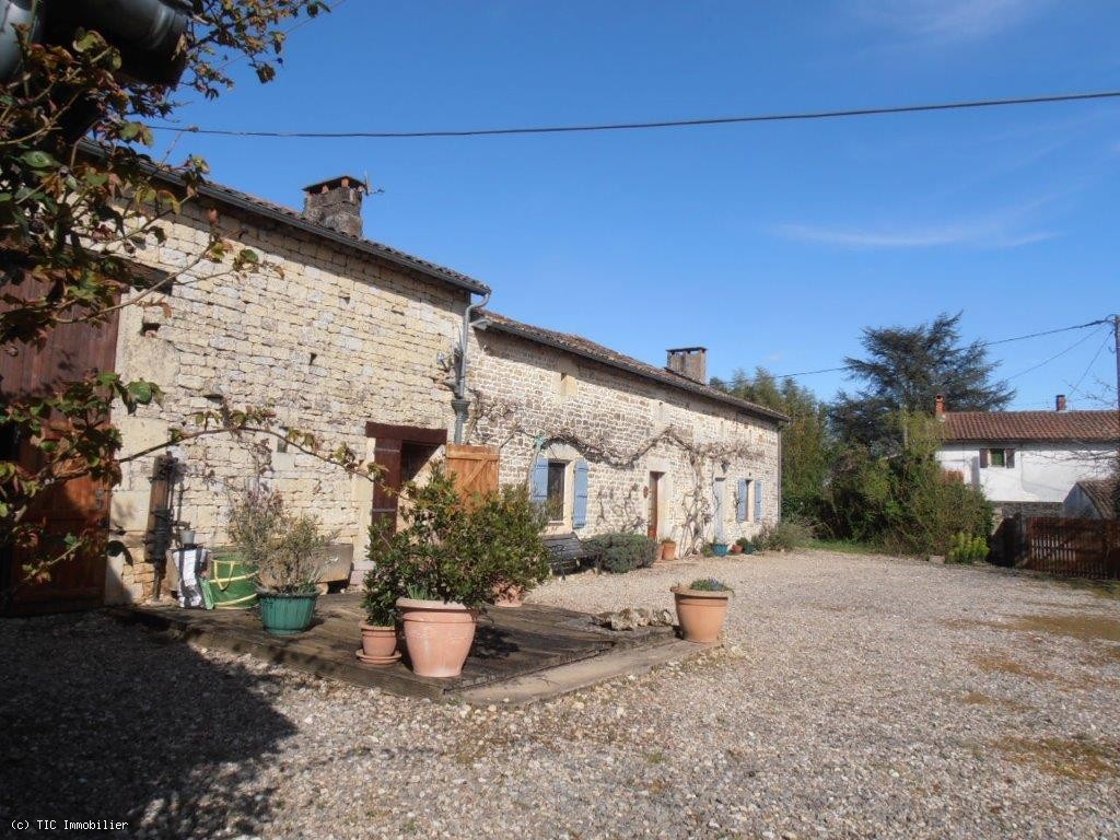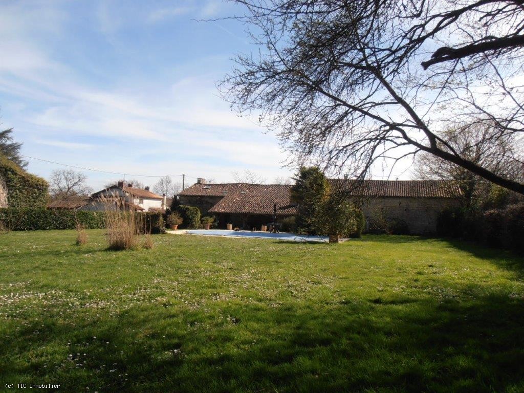 Traditional detached south-facing stone farmhouse with 4 bedrooms, attached barns, an in-ground pool and a lovely garden with fruit trees and a boules court, all on a plot of 3450m2.