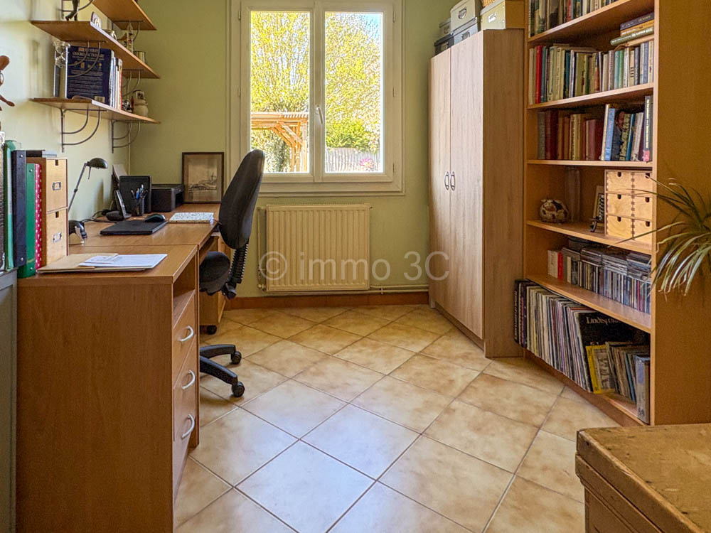 An entrance leads to a fitted and fully equipped kitchen open to the dining area. A hallway serves three spacious bedrooms of around 12 m² each, all with tiled flooring, as well as a study that can easily be converted into a walk-in closet or a fourth bedroom to suit your needs.