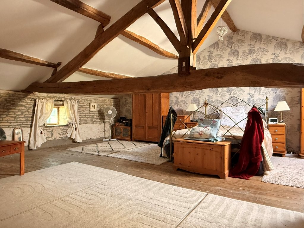 The property offers four bedrooms, including one on the ground floor, allowing for convenient single-level living. You’ll be charmed by its authentic features such as exposed stone walls and wooden beams, as well as its cosy wood-burning stoves, perfect for winter days.