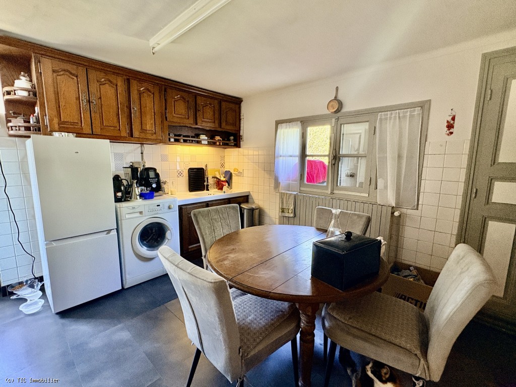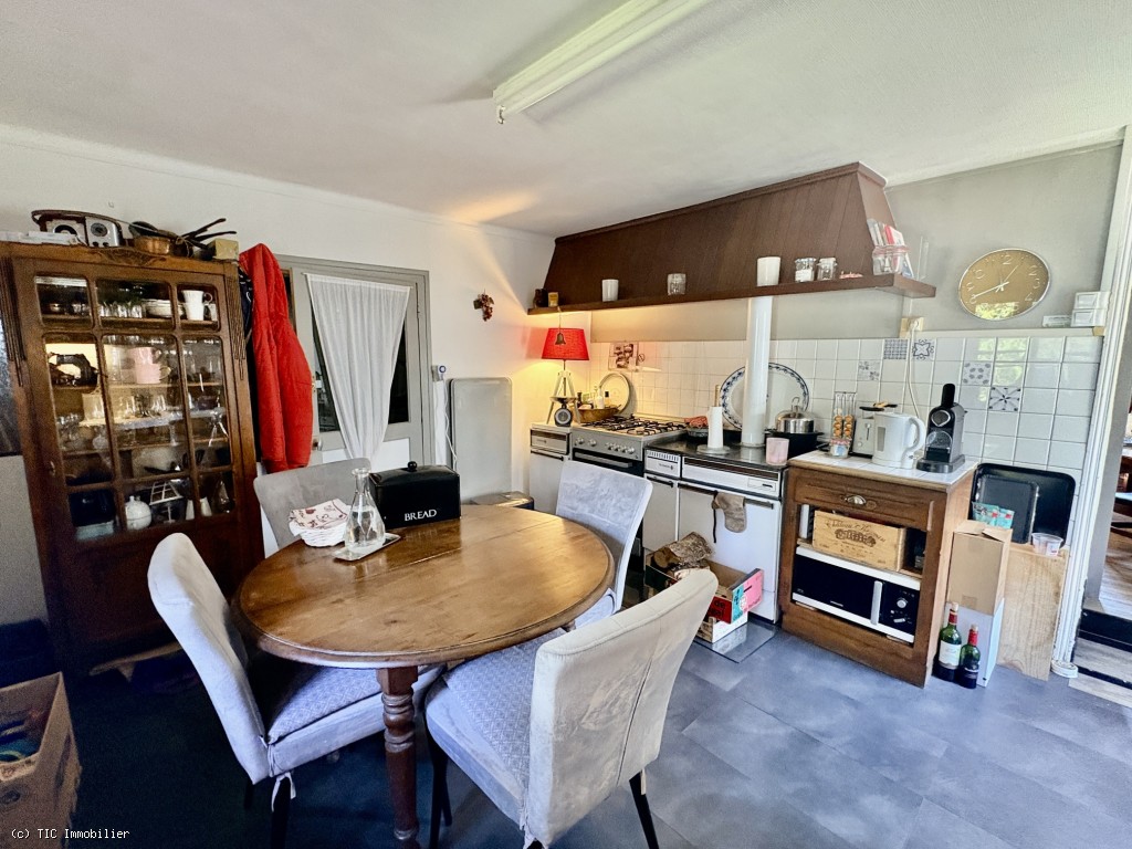 Kitchen 13.50 m², tiled floor, wood-burning stove