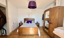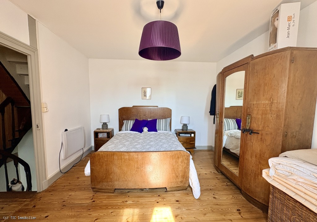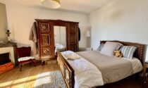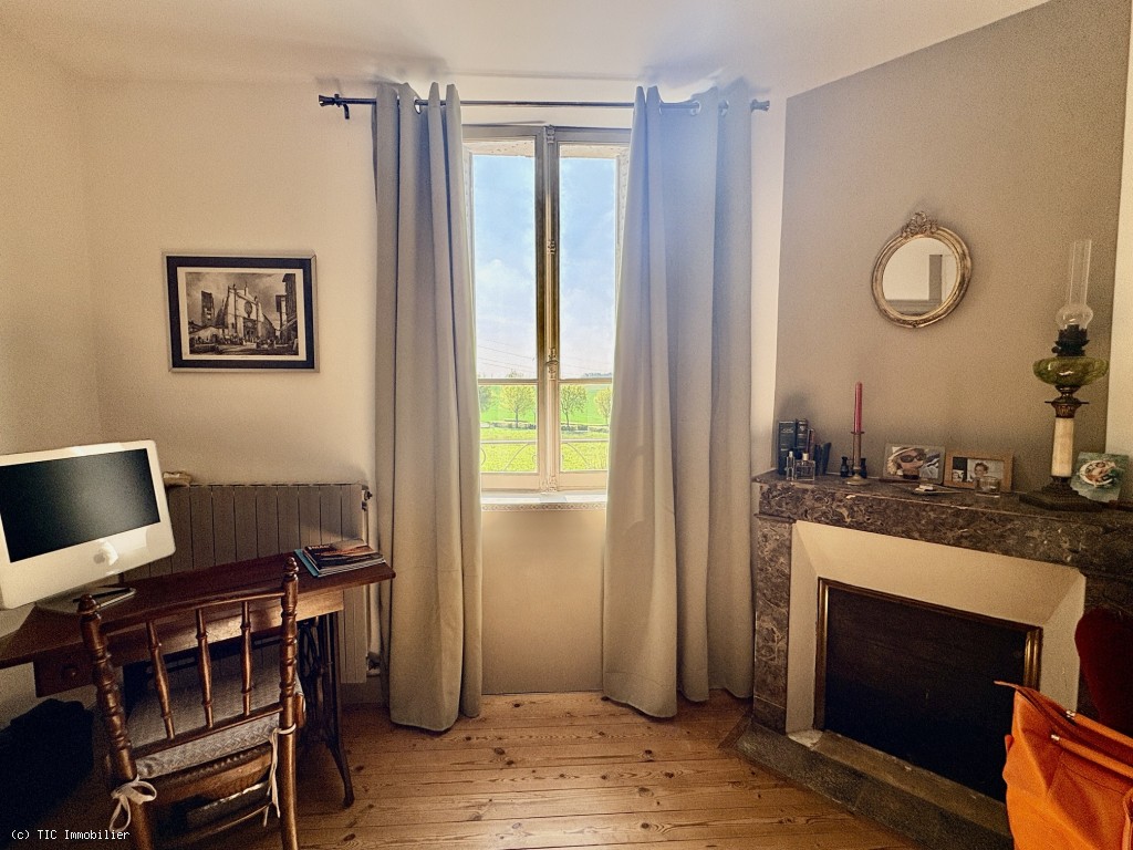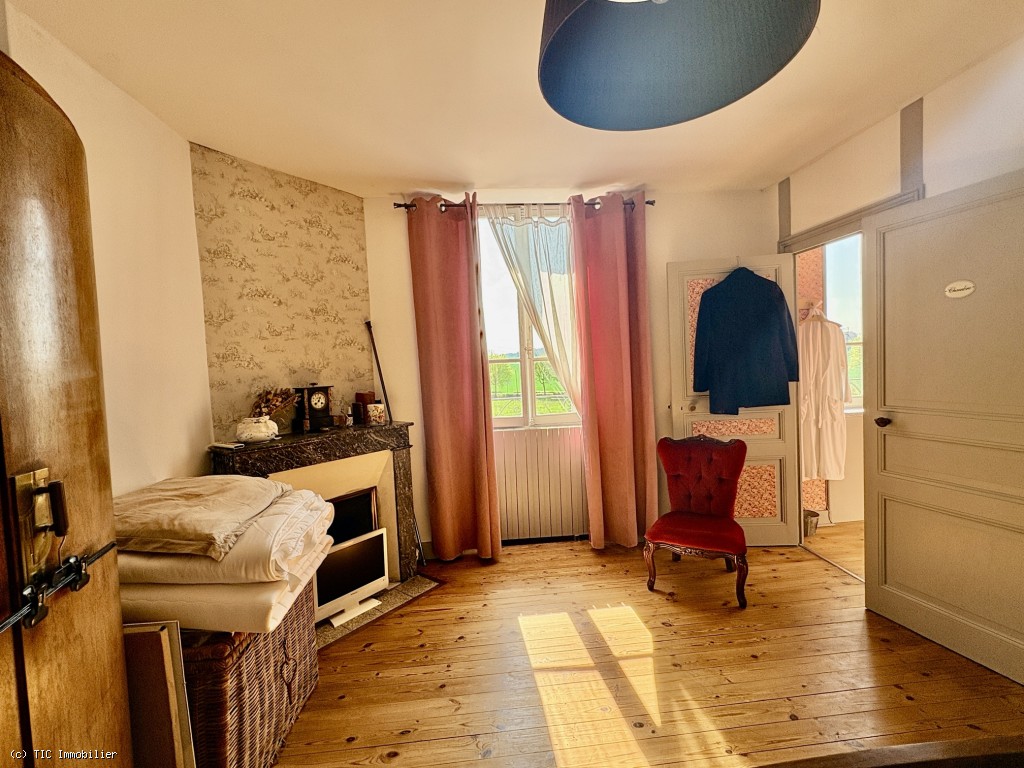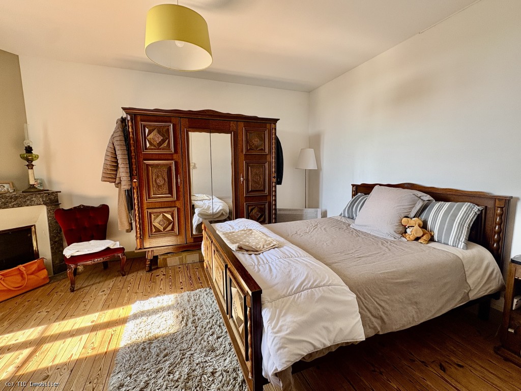 Bedroom 1: 15.61 m², wooden floor and fireplace, with small wash area 3.28 m²