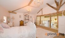 Accommodation includes a large ground-floor bedroom, a family bathroom, and a generous sitting room with mezzanine bedroom and en suite, creating an ideal guest area or master suite. There is also an additional room ready for conversion into another bedroom, office, or studio.
