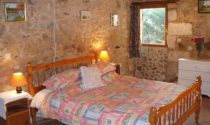 The old stone walls keep out the heat of the summer sun and they keep the heat in during the winter. There is a sitting/dining room downstairs with the adjacent kitchen separated by a bar built to include the original wooden cow byre. The kitchen is equipped for 5 people with fridge, oven, hob, microwave, dishwasher, coffee maker, crockery and cutlery. Behind the sitting room there is a large double room with en-suite bathroom, toilet and shower. There is a south-facing patio outside with chairs and table shaded by a plum tree. This is all on a level with the main door and the parking is right by the house so it would be suitable for somebody with disabilities. Upstairs there is a small twin room with its own shower room and toilet. There is a small single bedroom that is accessed through the twin room and shower room. You have a dedicated Wifi connection (i.e. not shared) for those wanting to work or to be entertained. At present this is ADSL with a fibre optic connection 'promised' for 2022 (we won't hold our breath on that - they are working on it....)