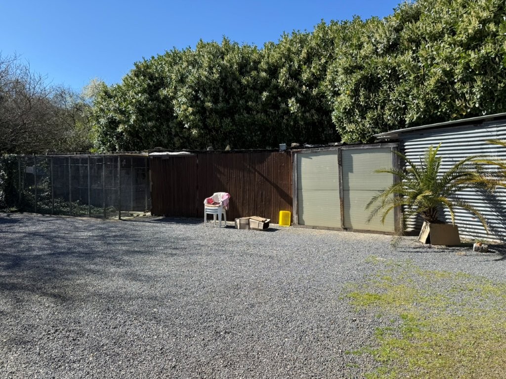 -70m borehole for watering, small wooden shelters, large plot, aviary