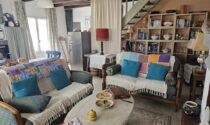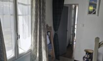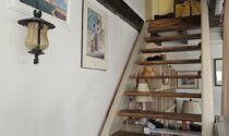 -Living room (31.5m²): fitted kitchen area, 2 windows, small window, front door (French window), staircase to the first floor, laminate flooring, open-plan fireplace