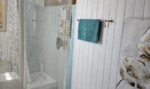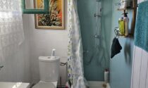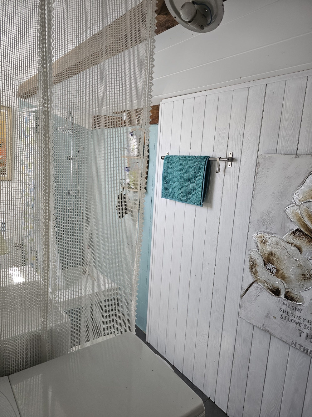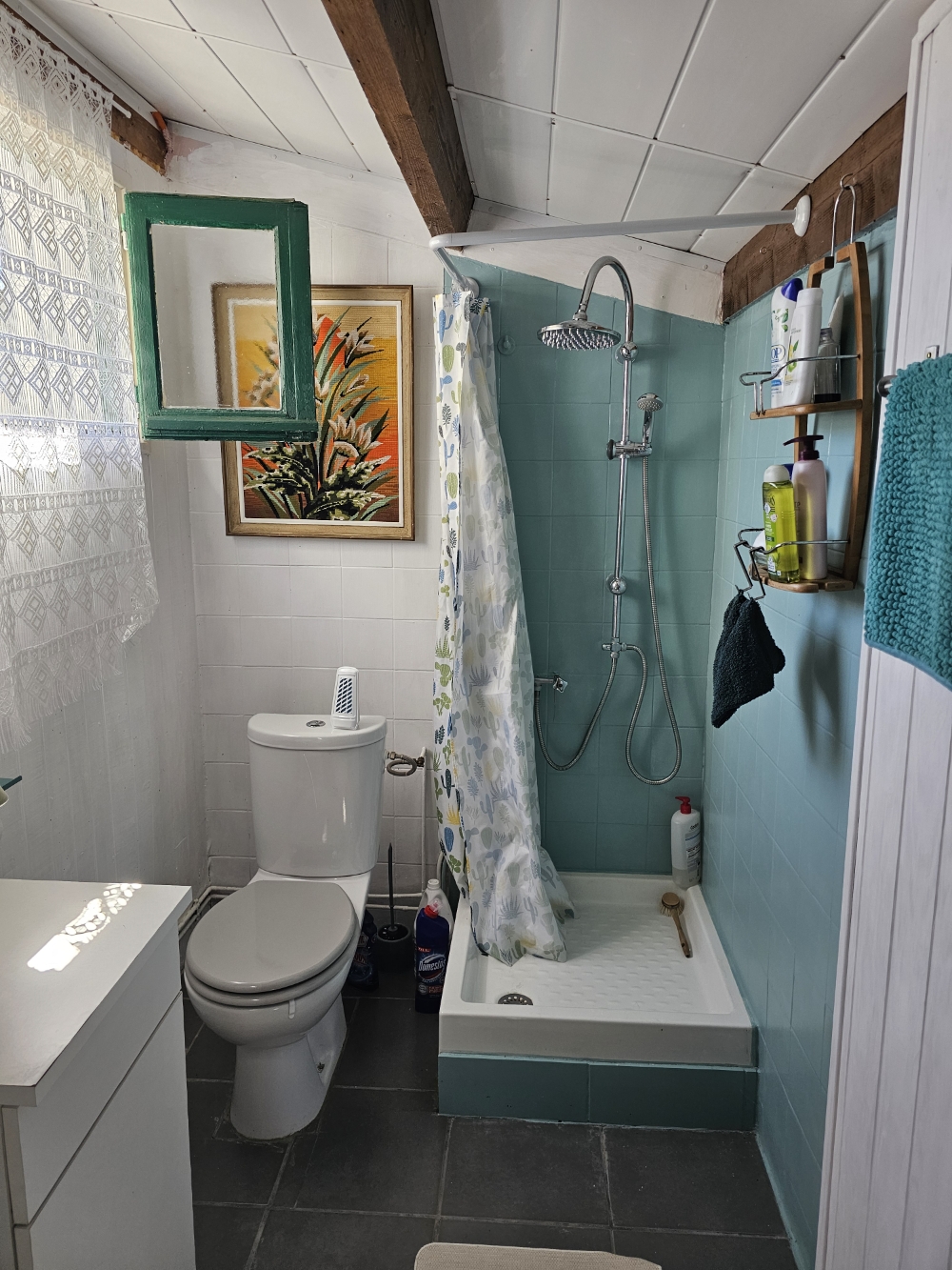 -Shower room (4.85m²): tiled floor, shower, toilet, washbasin, washing machine, small window