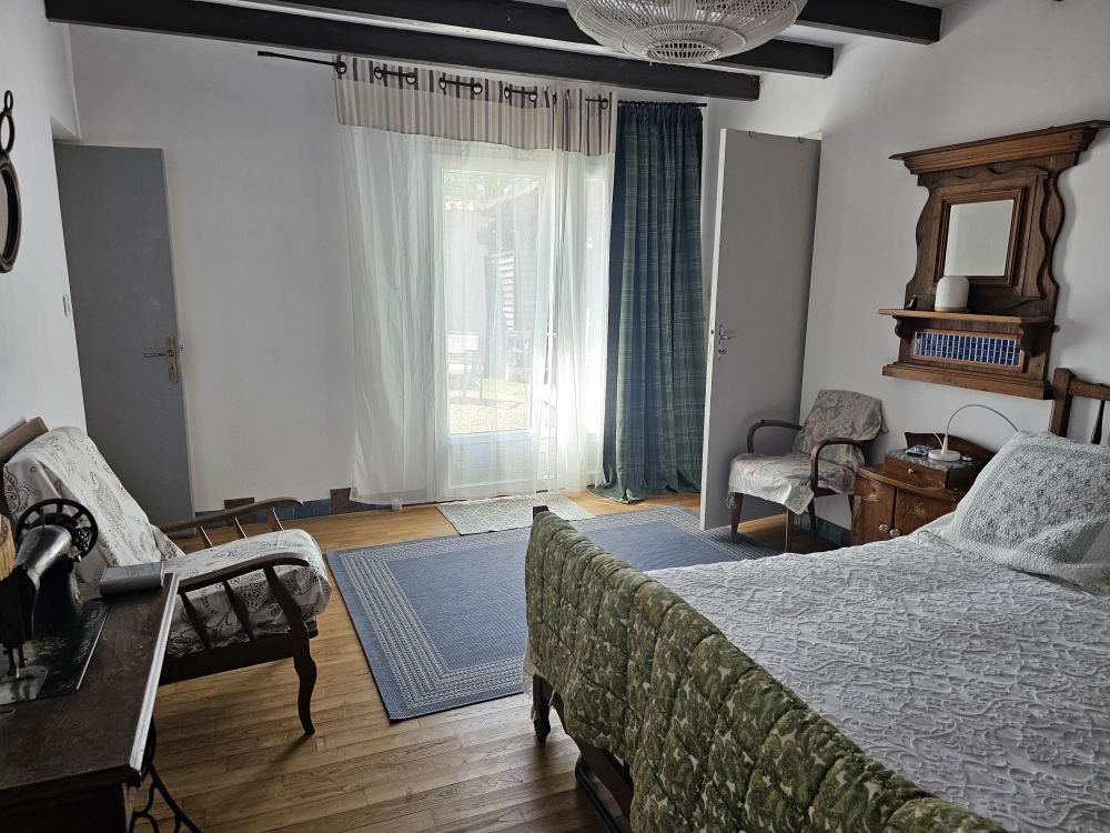 -Bedroom (18.27m²): wooden floor, French window leading to the courtyard