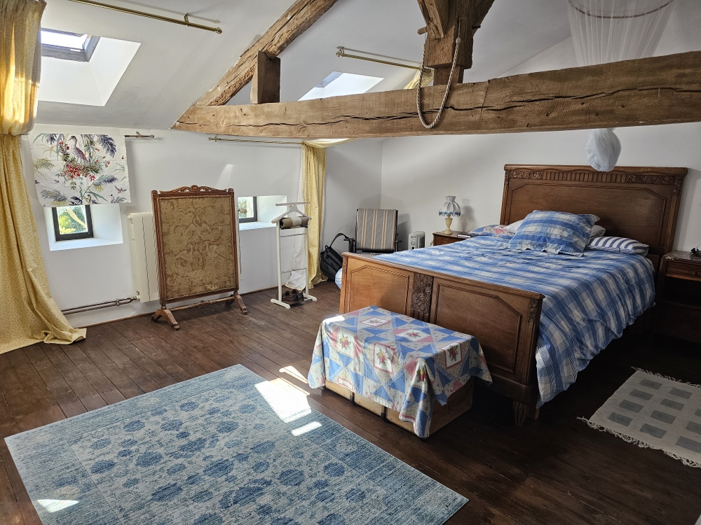 -Bedroom (24.16m²): 2 skylights, wooden floor, small window, cupboard (curtain)