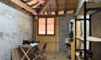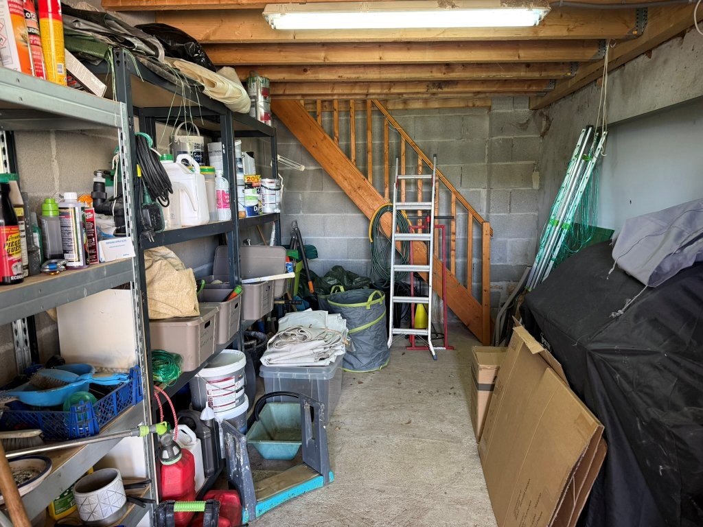 Wooden garden shed, boiler room, workshop with upper floor, storage building with upper floor, rainwater collection tank.