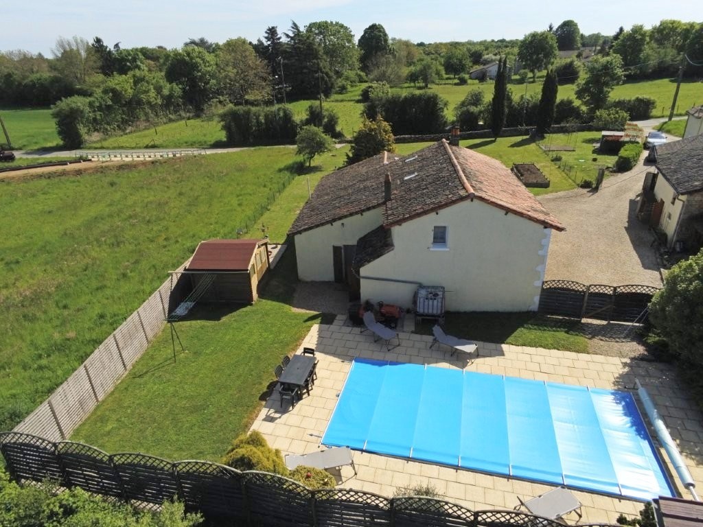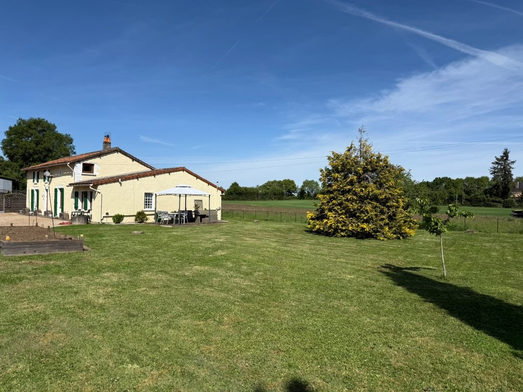 A beautiful detached 19th-century longère offering 4 bedrooms and 3 bathrooms, located in a small hamlet ideally situated between the towns of Sauzé-Vaussais and Ruffec, with easy access to the N10 for routes to Poitiers, Angoulême, Niort, and Limoges.