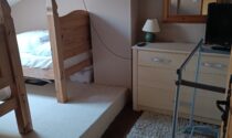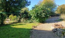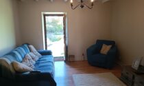 -Living room (13m²): parquet flooring, glass door leading to the garden.