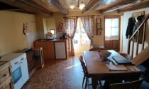 -Basic kitchen (23m²): linoleum on concrete, oil-fired auxiliary heating.