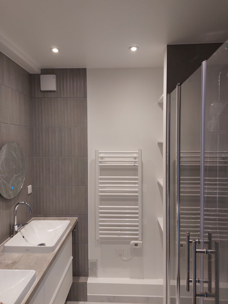 On the 4th french floor with elevator, in a pretty condominium, on the edge of the 16th / Boulogne, Porte de St Cloud metro station, close to shops. Beautiful crossing apartment of 89m2 with open view. Completely renovated. 2 bedrooms with plenty of storage. A bathroom with shower and double sinks. Separate toilets. Large kitchen open to entrance and living room (large bay windows). Floor heating. Quality services: Washer-dryer, woodfloor, Spacious shower, Lift, digicode, cellar, Eiffel Tower view.