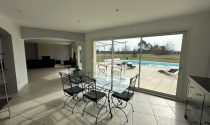 There is an entrance hall, office/bedroom with shower room and door leading to the garden. The living area is bright and spacious with 3 patio doors looking over the terrace and pool. The kitchen has built in appliances. There is a utility room and WC. A corridor leads to four bedrooms one with shower room and dressing room, there is also a family bathroom.