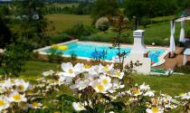 The detached house offers steps to an entrance, a simple kitchen, lounge with stone fireplace and door to the terrace with views over the pond and walled garden.