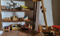 Workshop in a stone outbuilding, with an attic above and a wood lodge.