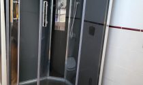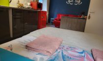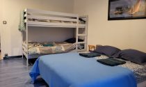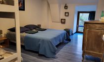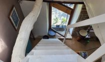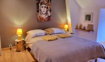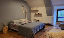 The private apartment has a ground-floor kitchen with wood-burning stove, a first-floor mezzanine living room with wood-burning stove, and a bedroom with shower plus washbasin. On the 2nd floor, a bedroom with shower and washbasin. On the 3th floor a bedroom with shower.