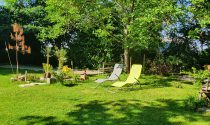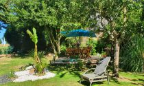 The grounds, planted with oak, maple, peach, hazelnut, walnut, plum, apple and cherry trees, have two wells, one of which is shared. There's also a permaculture vegetable garden, a chicken coop and a pétanque court. Two outdoor terraces The property has four entrances, two in front of the property and two to the rear of the longère. It faces south.