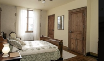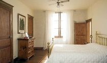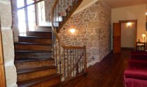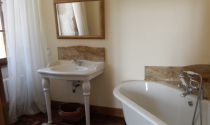First Floor Oak spiral staircase in the tower leads to a spacious first floor landing with exposed stonework, original polished oak floors and doors leading off to the four luxurious bedrooms, all with en-suites all of which have high ceilings, large windows with louvred shutters, panoramic views and original polished oak floors.