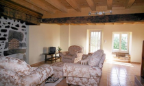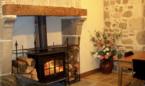 Ground Floor ●Living Room (6.6m x 6.3m) with exposed stonework and timbers, fireplace with new wood burning stove and original feature granite evier, door onto patio, tiled floor, wooden staircase to first floor.
