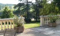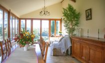 ●Garden Room (8m x 3.5m) glazed on 3 sides with French doors at each end giving panoramic views of the lake and parkland, fully insulated, double glazed, Italian stone tiled floor.